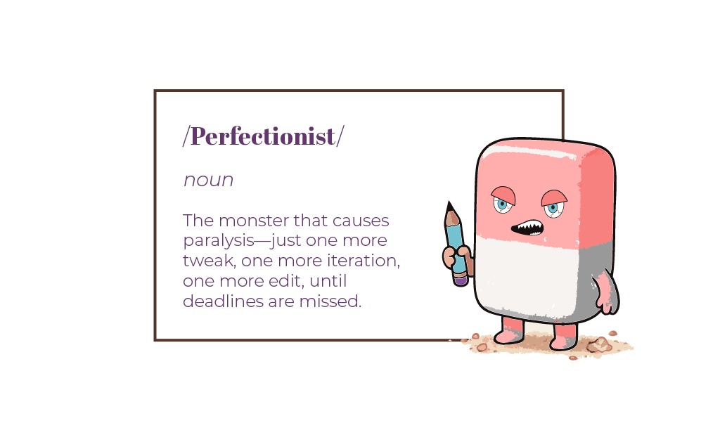 Beware The Perfectionist, the monster who means well but stalls everything. This monster polishes your work… into oblivion. Forever tweaking, editing, and second-guessing, The Perfectionist delays launches and kills momentum in pursuit of an impossible "perfect."
