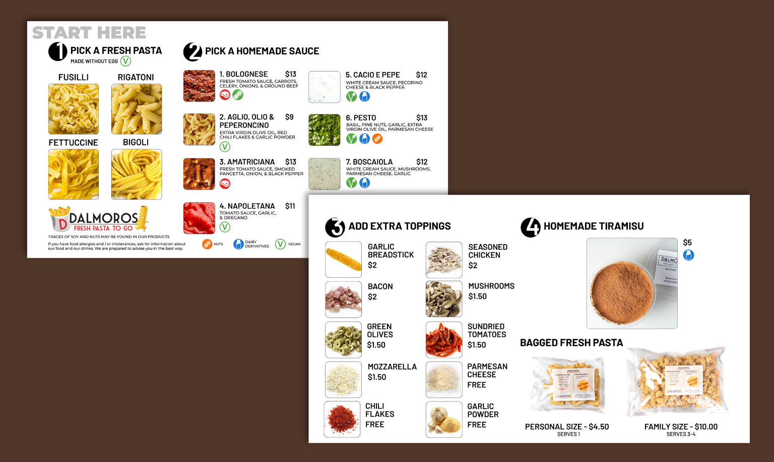 Originating in Venice, Italy, DalMoros Fresh Pasta To Go serves authentic Italian recipes of Fresh Pasta and Homemade Sauces with customizable menu offerings in a convenient, fast-casual environment. With locations across Tampa Bay, Central Florida, South Florida, and the Boston area, this growing brand needed a cohesive brand foundation that could travel from Venice to St. Pete and beyond.